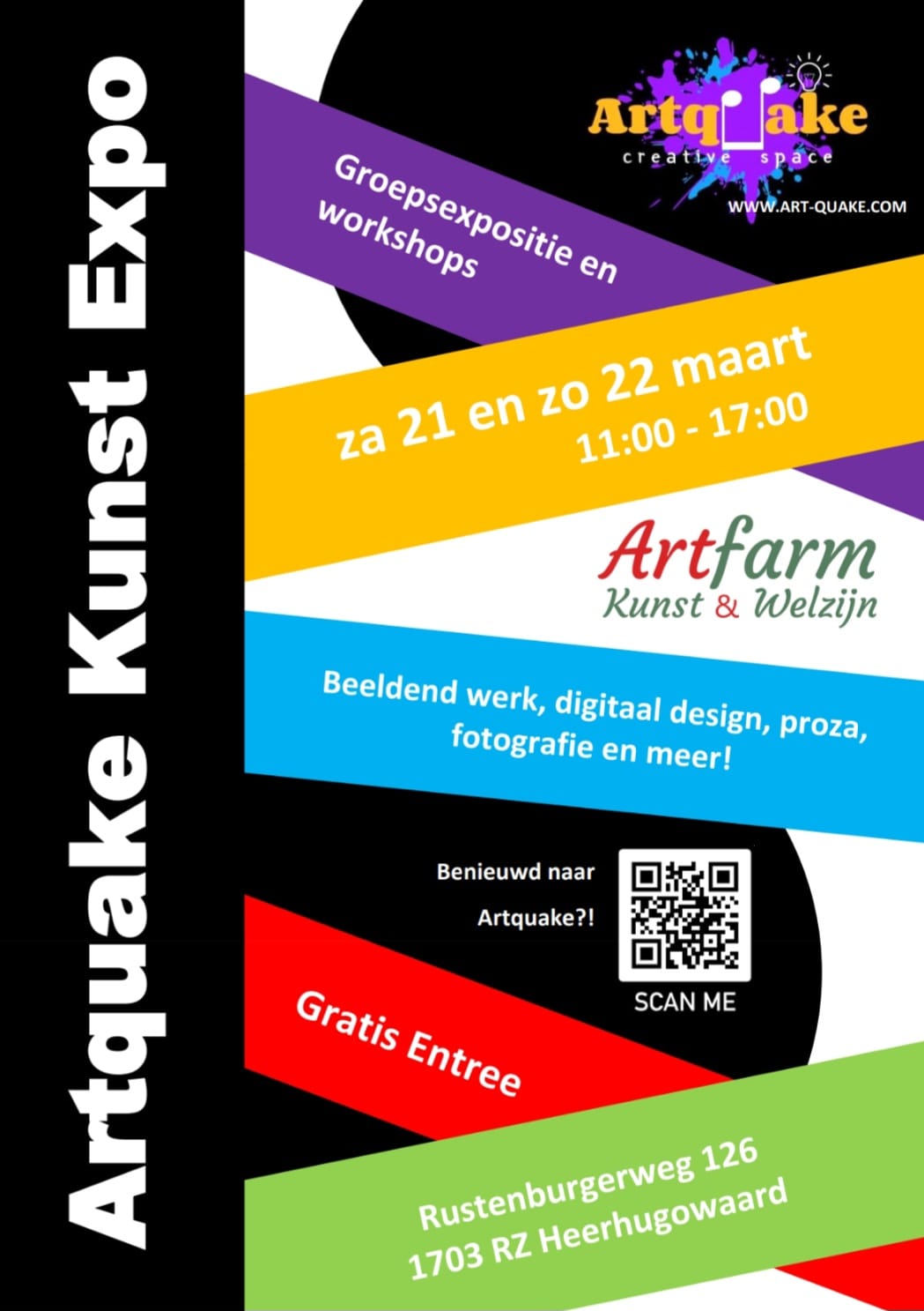 Het is weer tijd voor een nieuwe groepsexpositie van Artquake bij de Artfarm! Een weekend waarin veel nieuw talent en prachtige kunstwerken te zien zijn. Zet de datum alvast in de agenda en geniet samen met vrienden, familie en kunstliefhebbers met ons mee!
