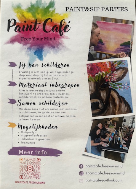 Elke maand kun je deelnemen aan deze laagdrempelige en gezellige schilderworkshop van de dames van Paintcafe in ons mooie flexatelier.
